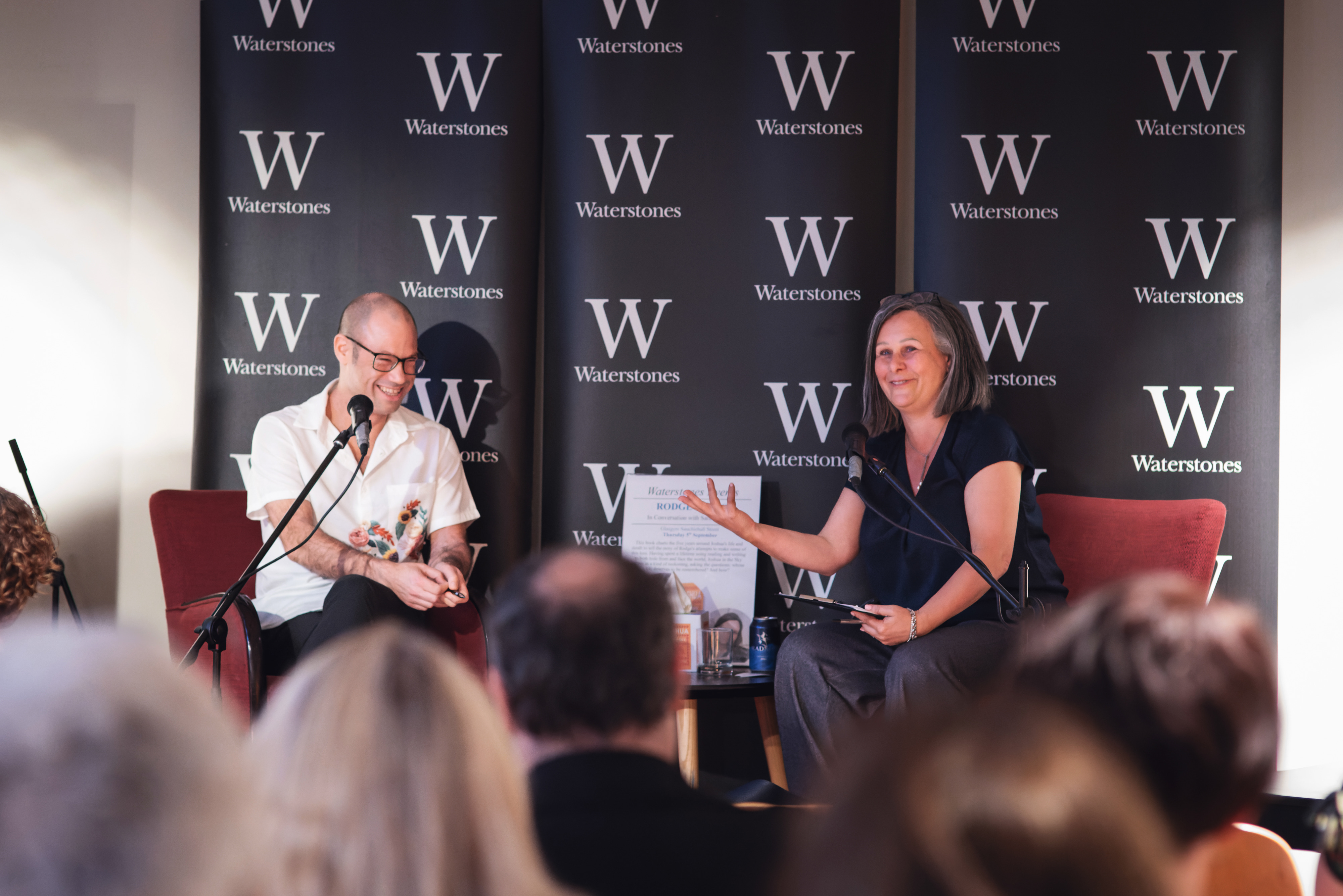 (Rodge, with Sara Sheridan, at the launch of Joshua in the Sky, Glasgow Waterstones Sauchiehall Street, September 2024)
